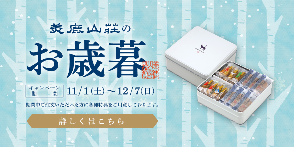 商品代⾦10,800円(税込)以上お買い上げの⽅には「美鹿山荘のあられ」をプレゼント!!