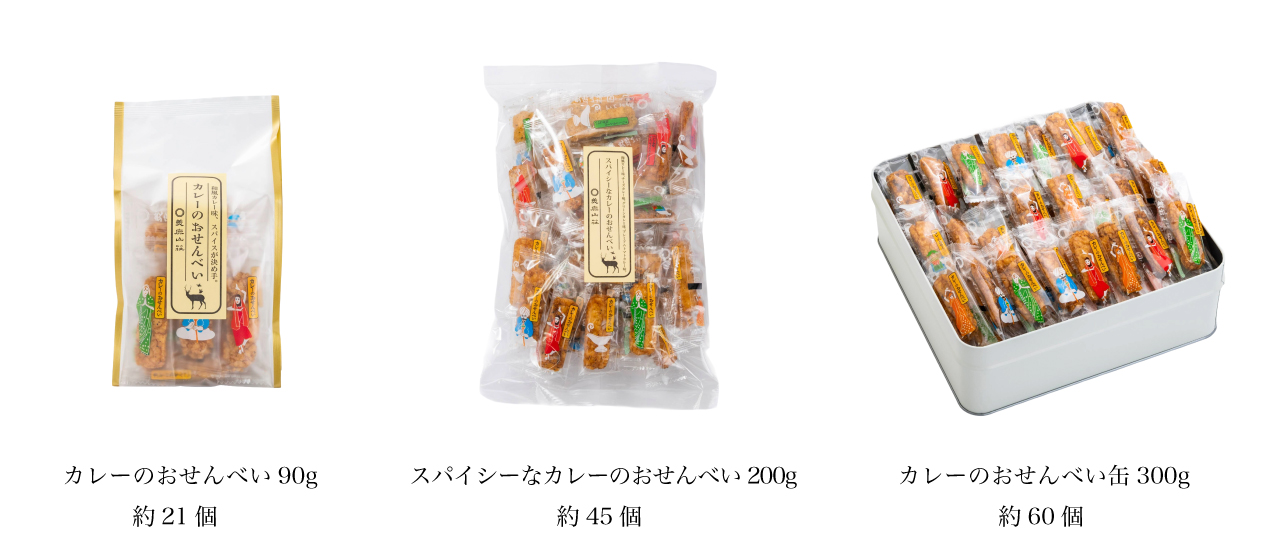 カレーのおせんべい、鹿の種、海老のビスクせんべいなど、